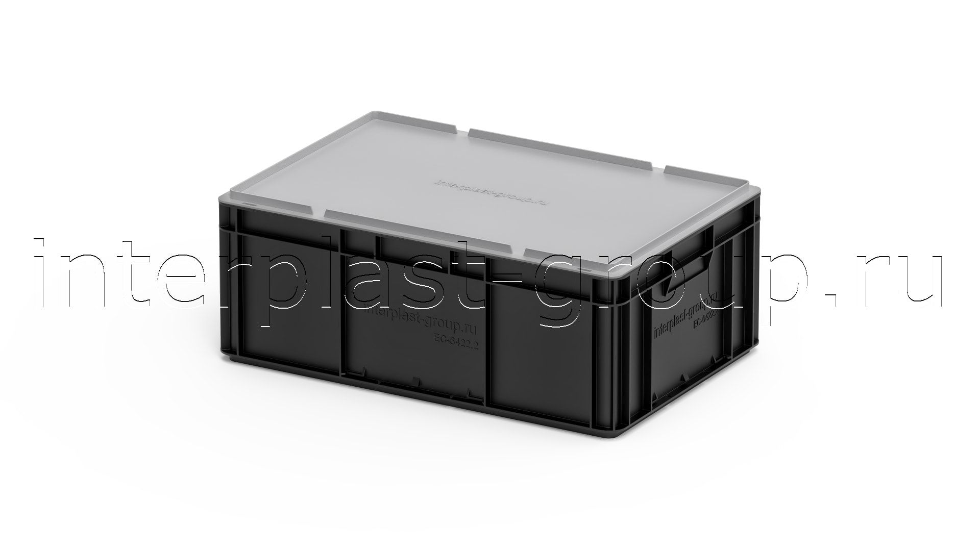 Евроконтейнер закрытые ручки/сплошное дно (черный), 600x400x220 мм