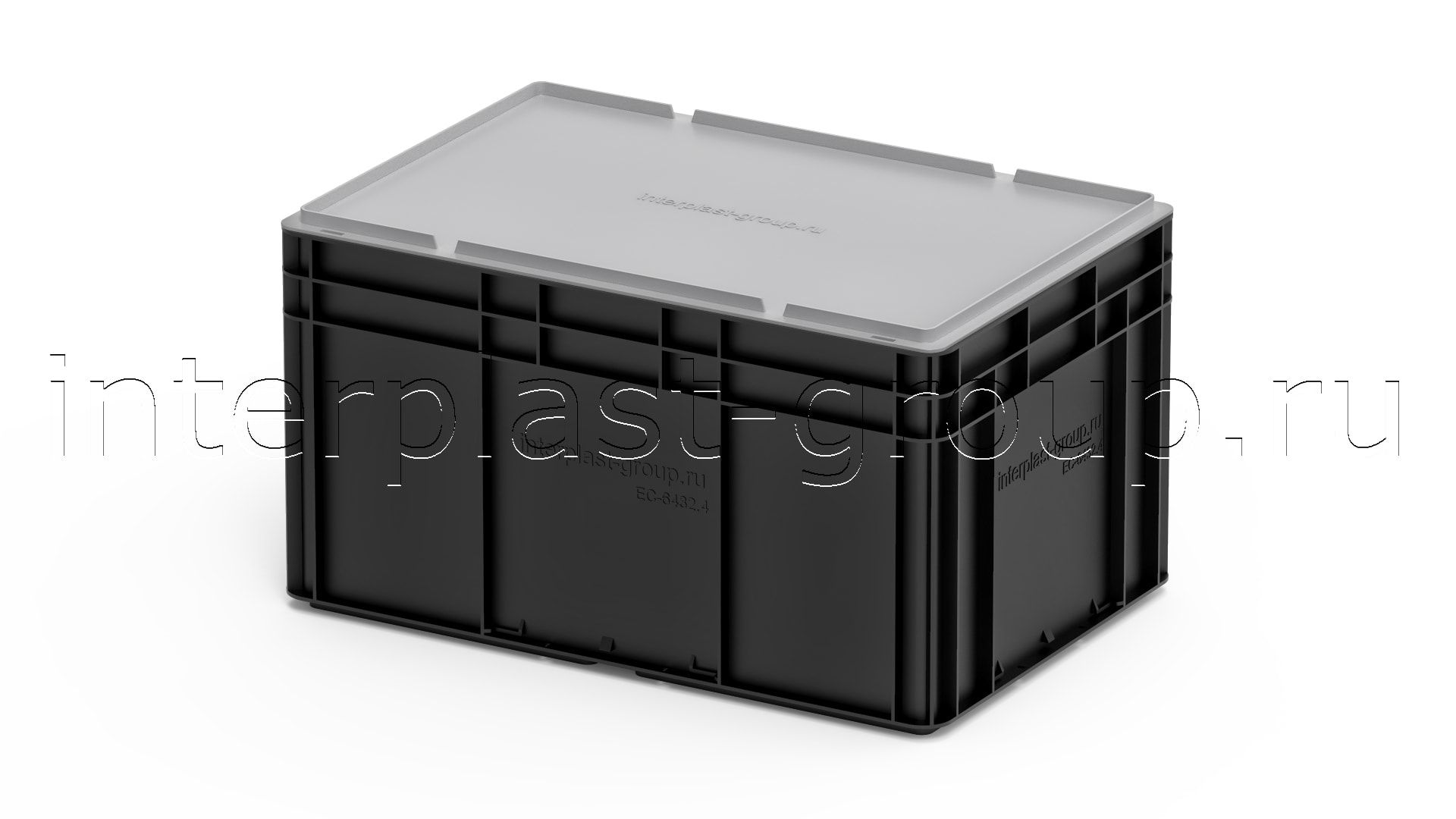 Евроконтейнер закрытые ручки/усиленное дно (черный), 600x400x320 мм