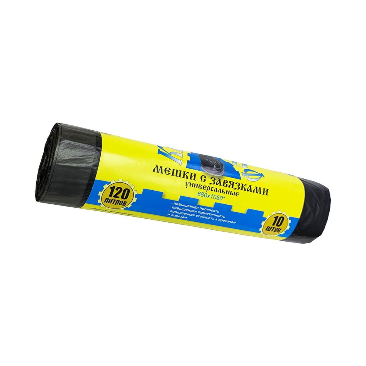 Мешки для мусора 120 л, с завязками, черные, в рулоне 10 шт., ПНД, 14 мкм, 1050х680 мм, Крепакоф, 4607075710351