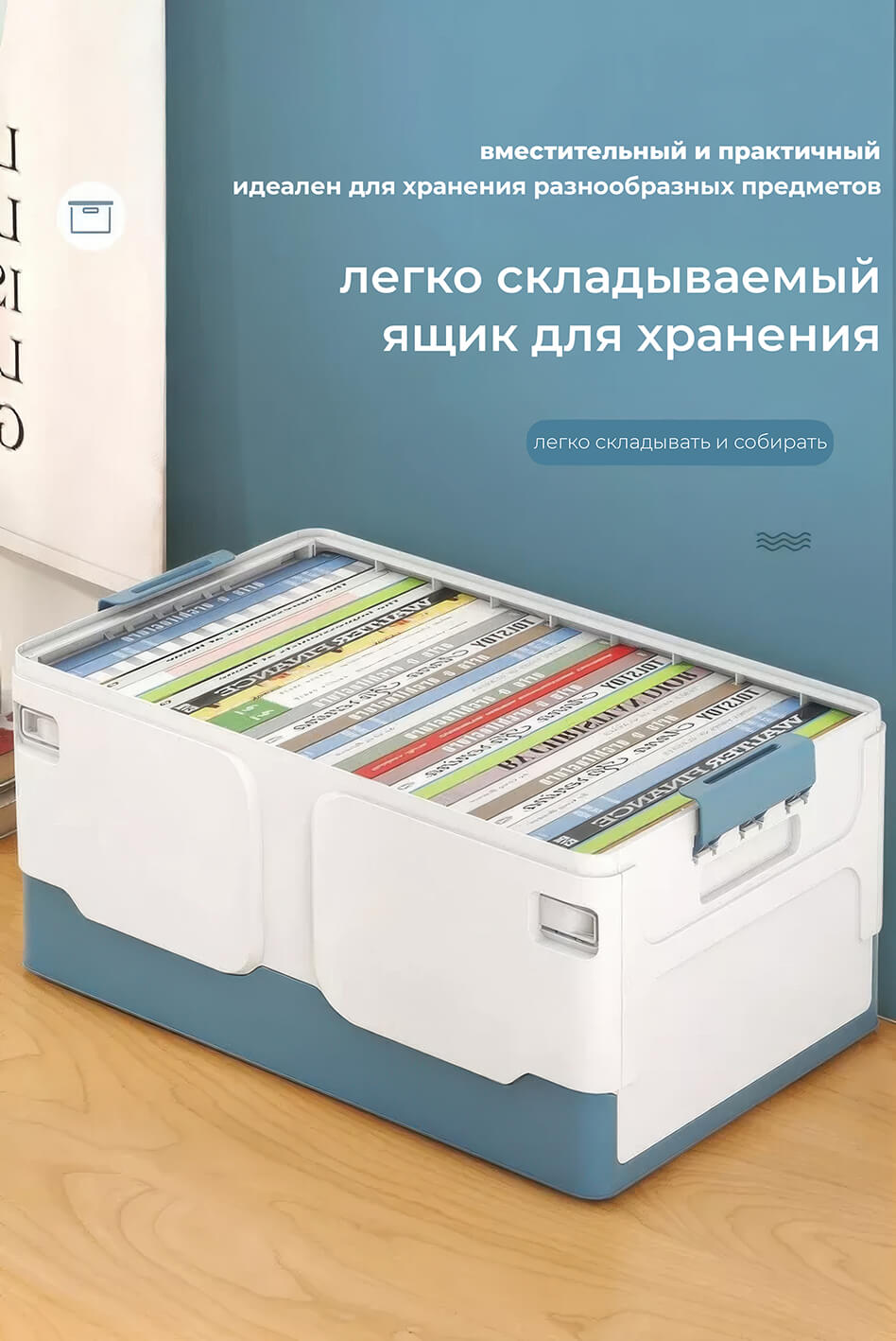 Складной ящик 370х240х240 мм голубого цвета – свежесть, чистота и порядок в вашем доме