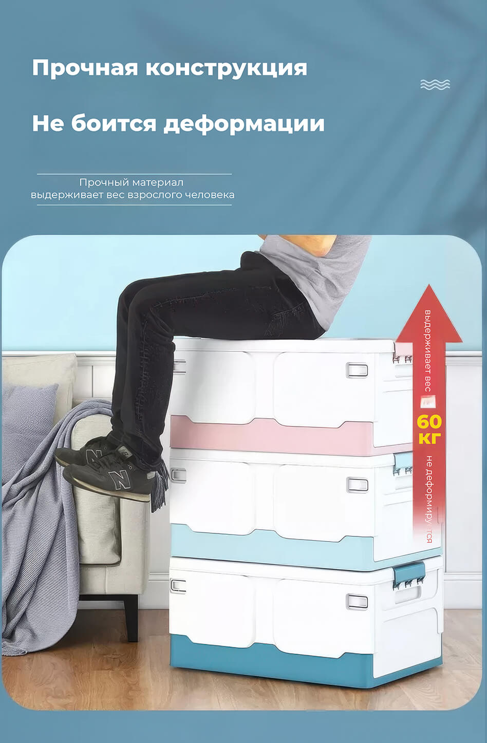 Создайте порядок и уют с этим складным ящиком, который идеально подойдет для хранения одежды, игрушек, документов, мелочей и бытовых принадлежностей. Пластиковый контейнер выполнен в сочетании белого и голубого цветов, что добавляет ощущение свежести и легкости в интерьер. Пластиковая коробка с крышкой защищает вещи от пыли и влаги, а прочная конструкция гарантирует долговечность. Благодаря складной конструкции ящик пластиковый легко складывается, экономя место, когда не используется. Удобные ручки обеспечивают комфортную переноску. Купите пластиковый ящик для вещей прямо сейчас и наслаждайтесь удобством и порядком в своем доме!