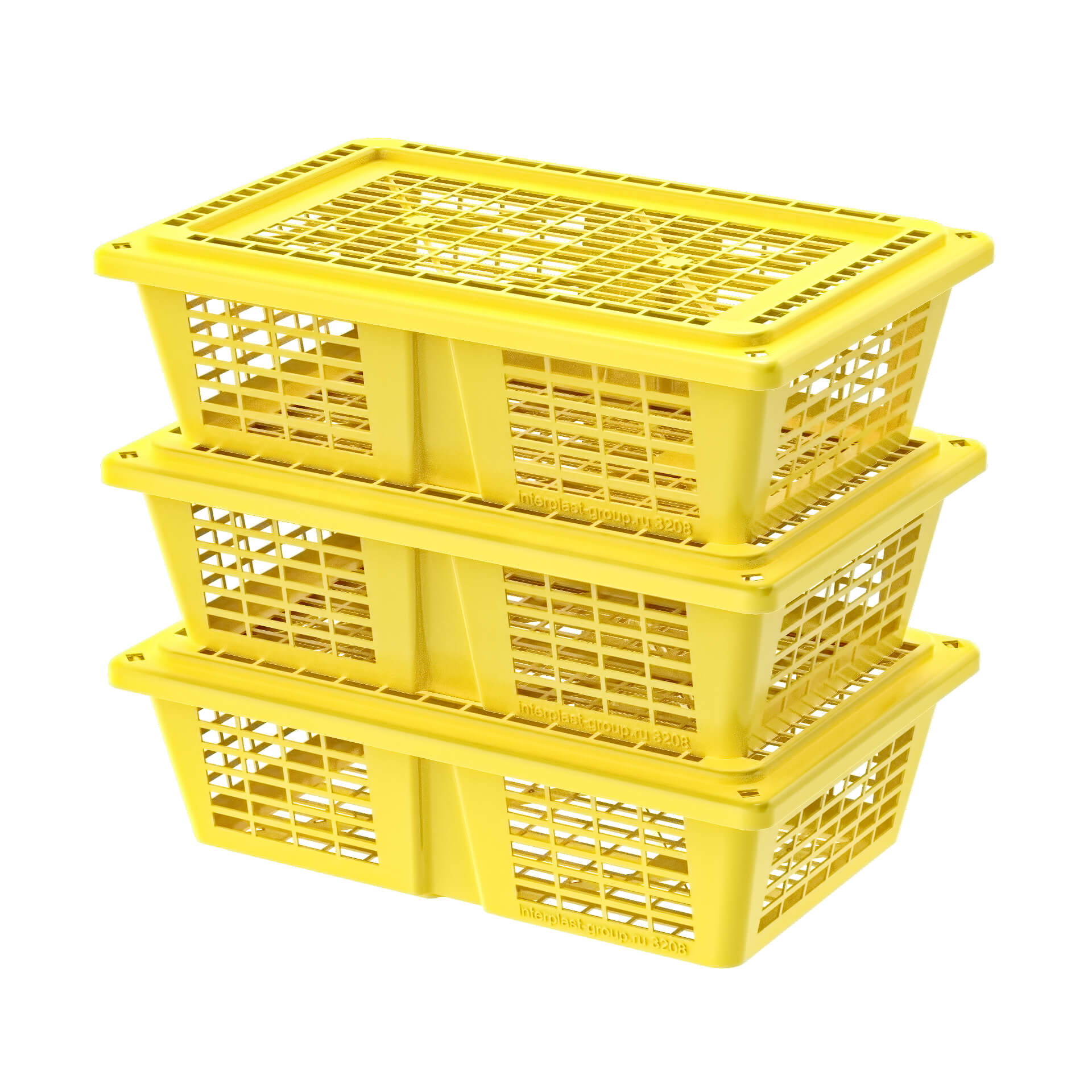 Ящик продуктовый универсальный желтый 300x200x80 мм с крышкой – компактное и надежное хранение. Прочная пластиковая конструкция обеспечивает долговечность, а перфорированные стенки создают естественную вентиляцию, сохраняя свежесть овощей, фруктов, ягод, грибов, хлеба и рыбы. Крышка в комплекте защищает содержимое от загрязнений и влаги, обеспечивая дополнительную безопасность. Ящик штабелируется с крышкой для удобного хранения и вкладывается без крышки, экономя пространство. Яркий желтый цвет ассоциируется с теплом и изобилием, а пластик легко моется и не впитывает запахи, делая использование максимально комфортным.