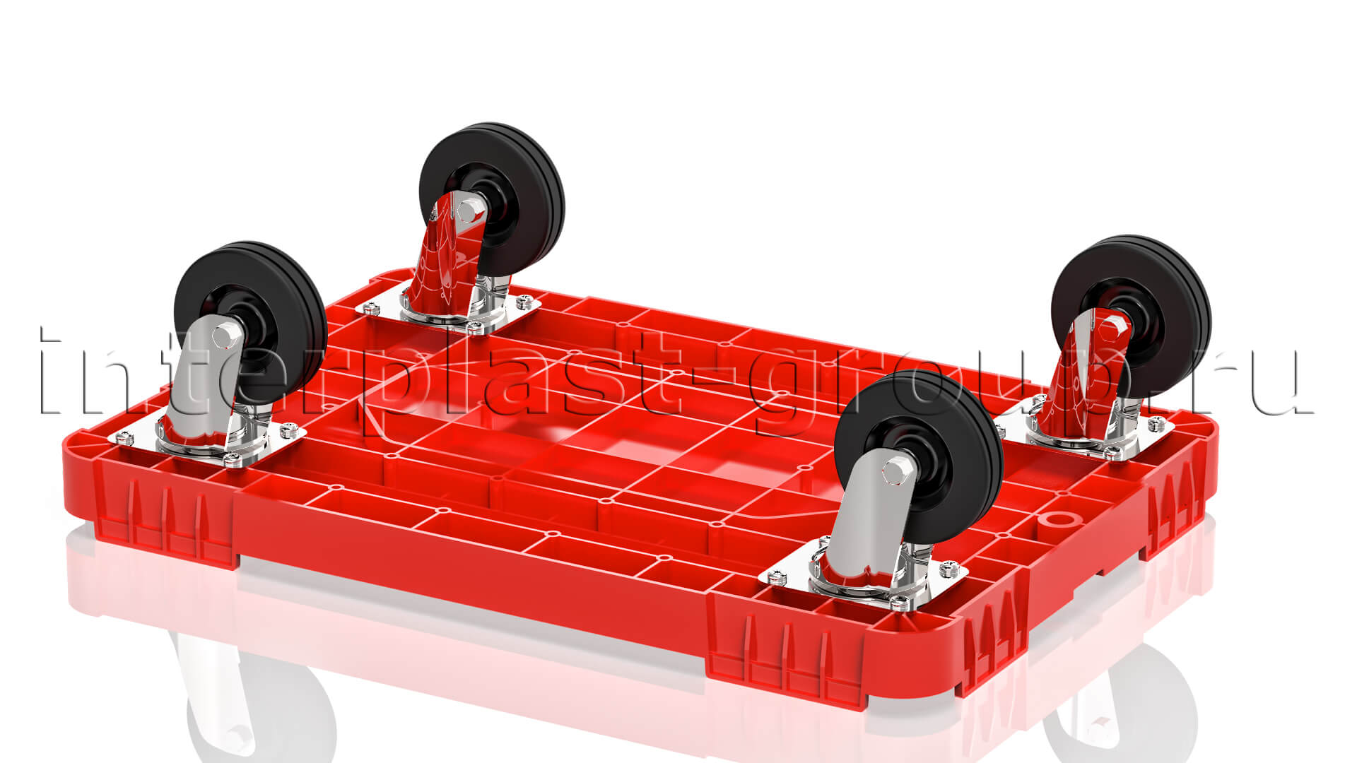 Тележка пластиковая сплошная без тормозов красная в Саратове