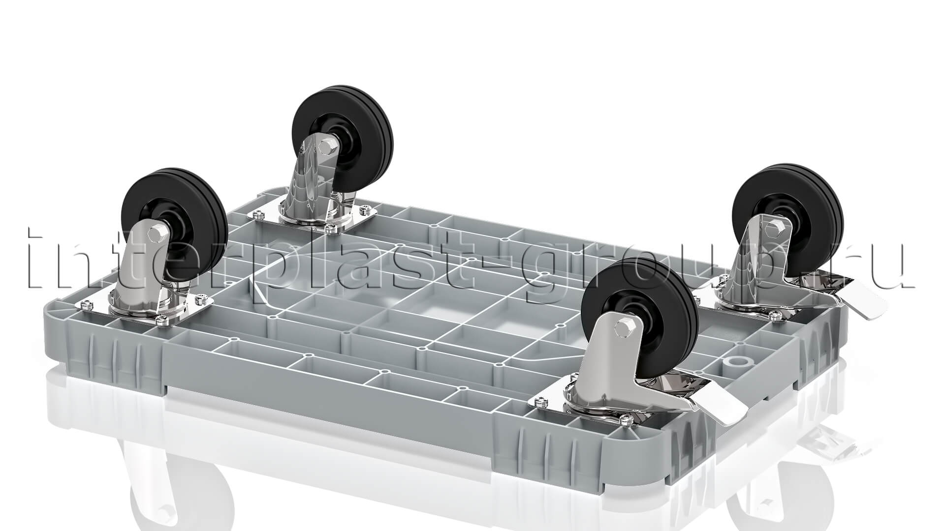 Тележка пластиковая сплошная 2 колеса с тормозом серая