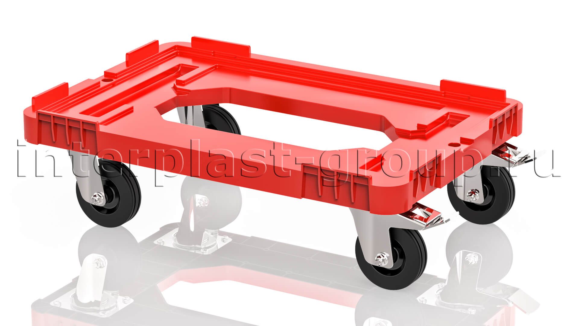 Тележка пластиковая с отверстием 2 колеса с тормозом красная в Саратове