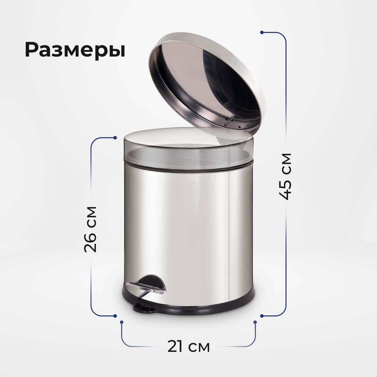 С вместимостью 5 литров, оно идеально подходит для помещений с невысокой проходимостью. Удобная педаль для открывания облегчает использование, а плотно прилегающая крышка надежно изолирует запахи. Внутренний съемный пластиковый контейнер с удобной ручкой облегчает процесс извлечения.