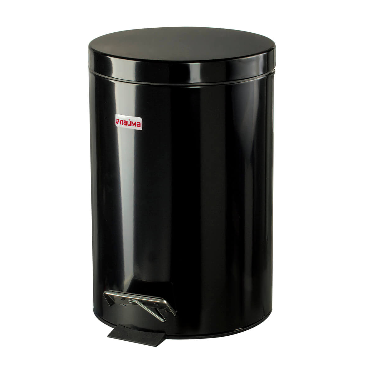 Ведро-контейнер для мусора (урна) с педалью LAIMA Classic, 12 л, черное, глянцевое, металл, со съемным внутренним ведром